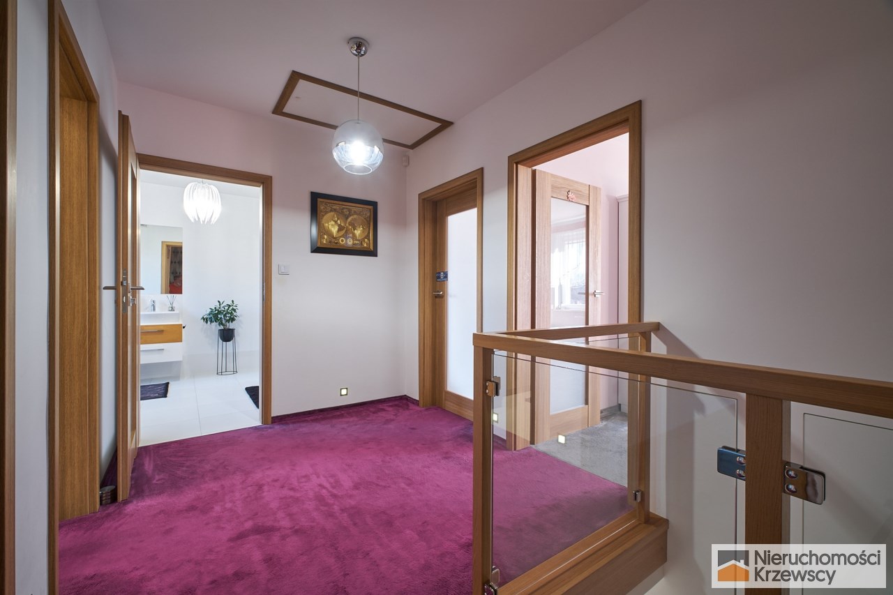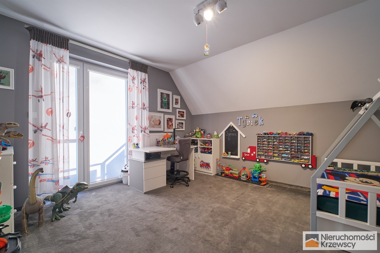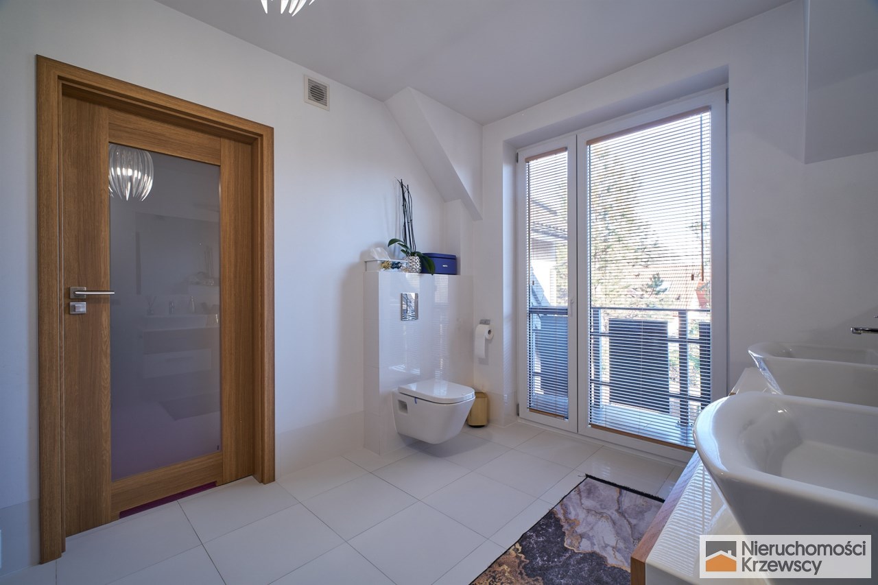 Piętro o powierzchni 82 m2 - 3 duże sypialnie prawie bez skosów ( 16,60 m2 i 17,10 m2 i 23,90 m2 ) w tym sypialnia główna z własną garderobą., łazienka z balkonem i dwuskrzydłowymi drzwiami, pralnia jako oddzielne pomieszczenie.