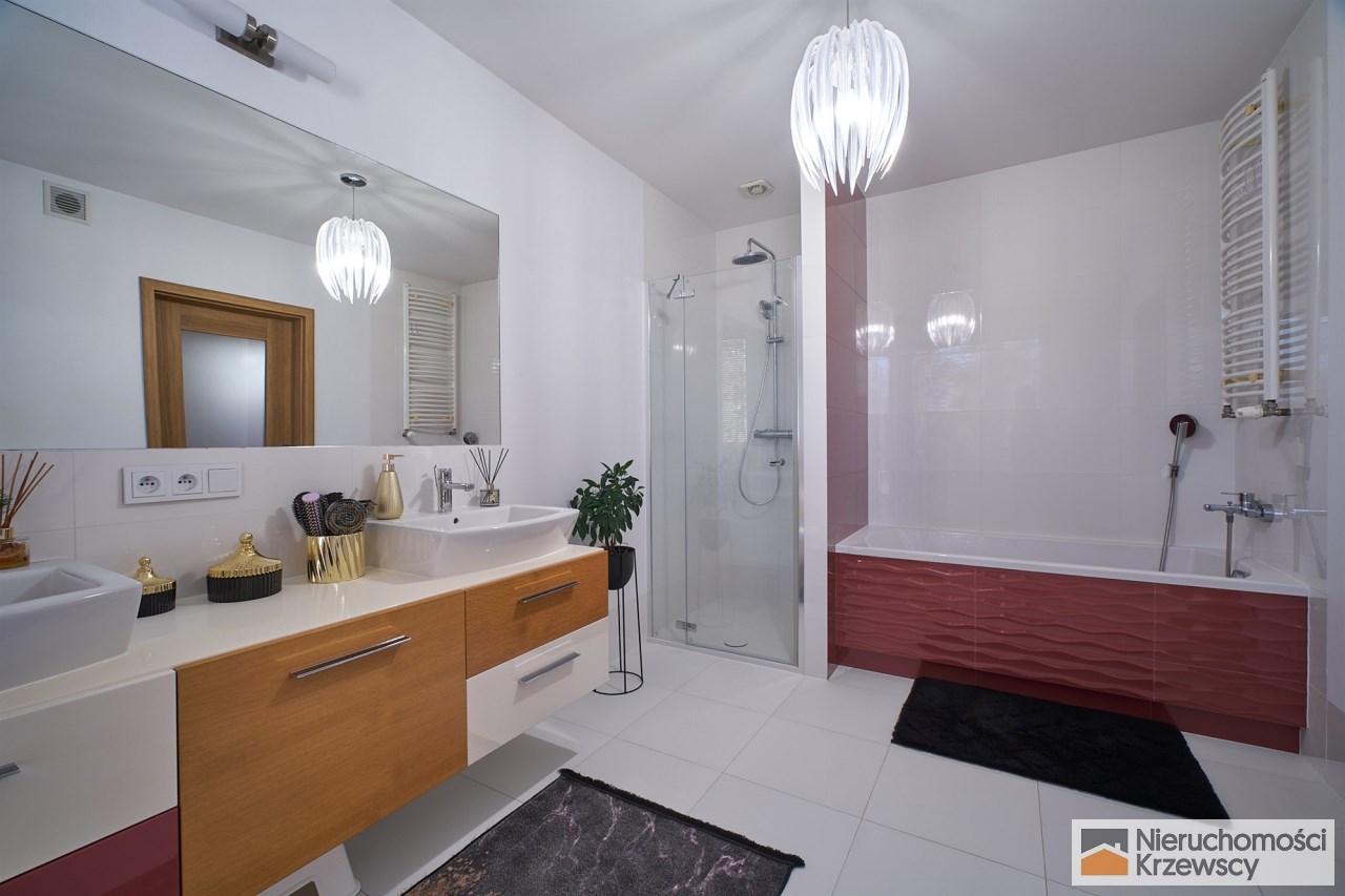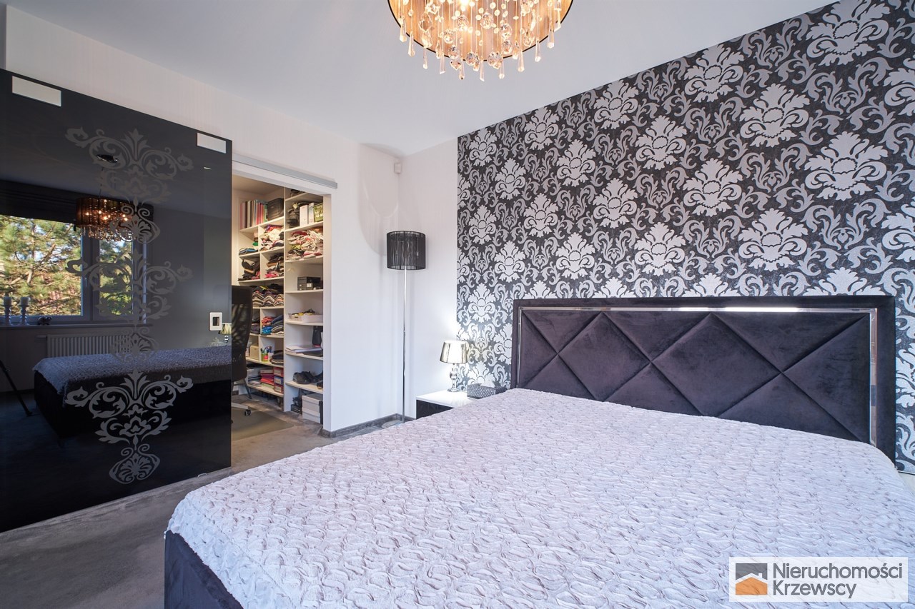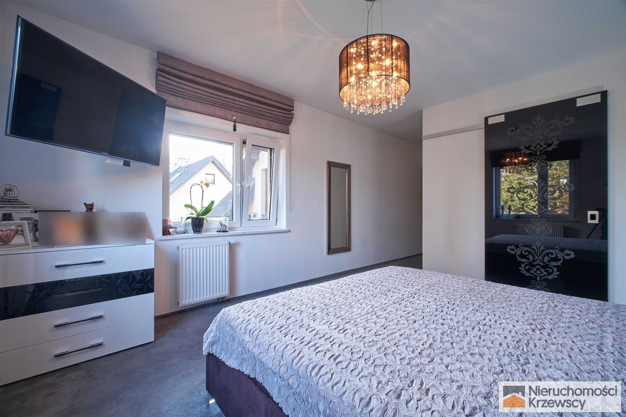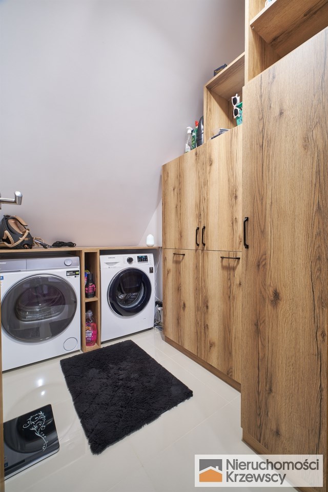 Piętro o powierzchni 82 m2 - 3 duże sypialnie prawie bez skosów ( 16,60 m2 i 17,10 m2 i 23,90 m2 ) w tym sypialnia główna z własną garderobą., łazienka z balkonem i dwuskrzydłowymi drzwiami, pralnia jako oddzielne pomieszczenie.