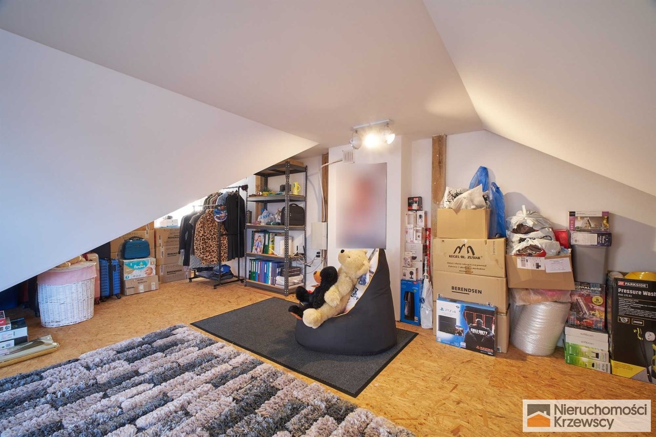 Poddasze o powierzchni około 60 m2 z oknami i doprowadzonymi instalacjami pełniące aktualnie funkcję do przechowywania rzeczy ale idealnie nadające się do zaadoptowania na dodatkową powierzchnię mieszkalną w razie takiej potrzeby