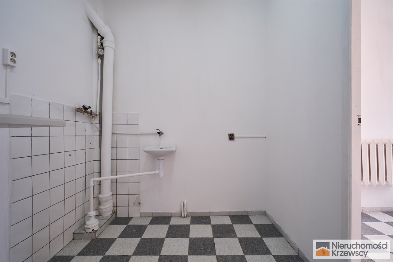 Lokal o powierzchni 12,40 m2 zlokalizowany na wysokim parterze wysokim wejście po wysokich schodach. Lokal z witryną, którą można wykorzystać na reklamę działalności