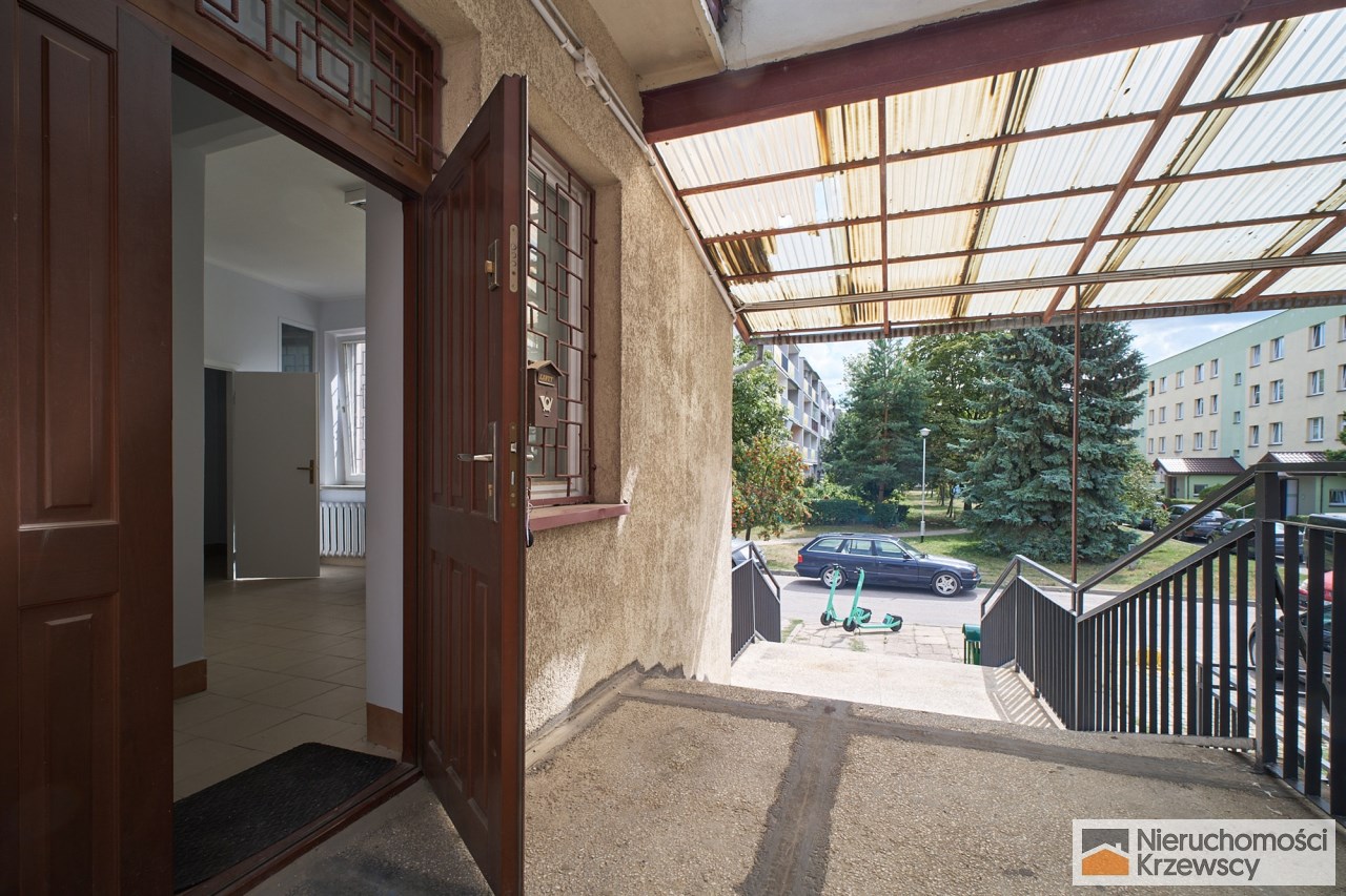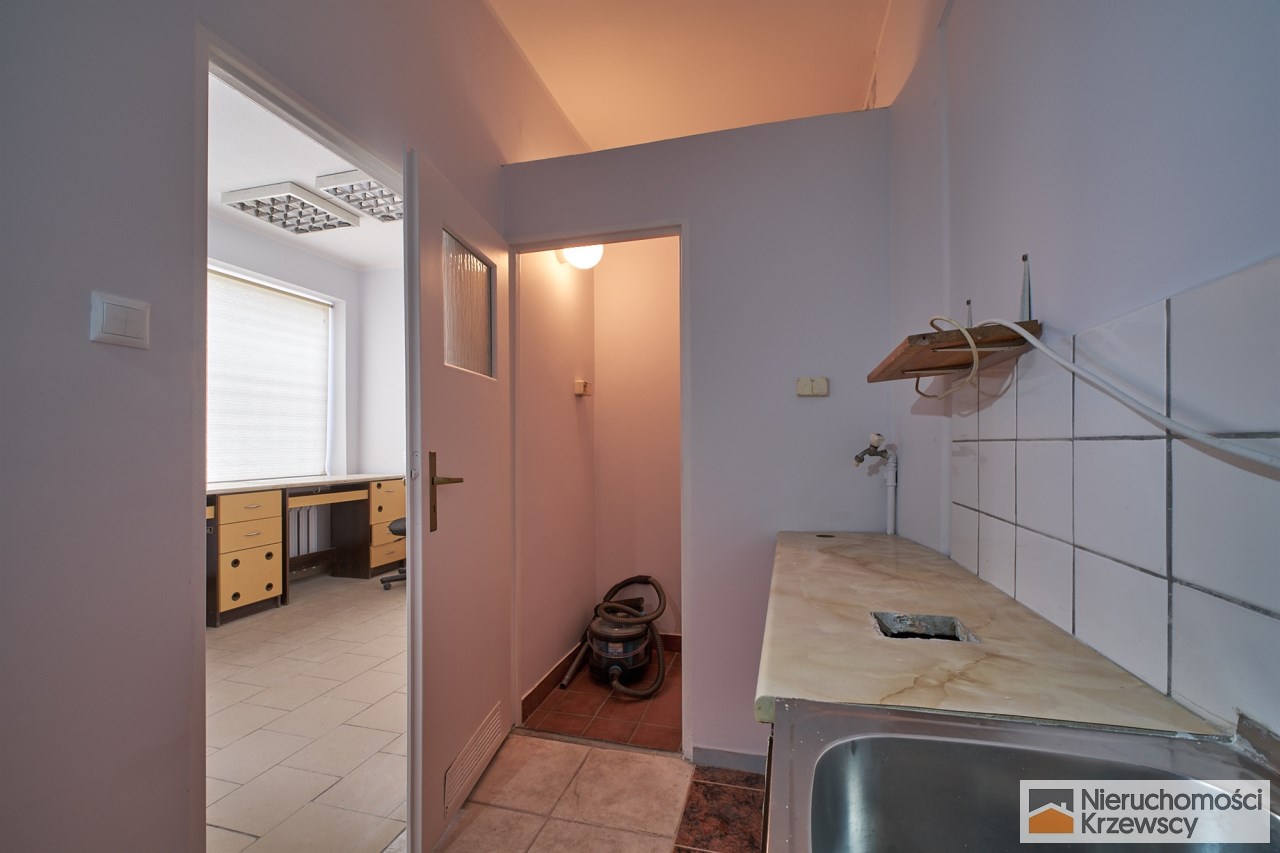 Lokal o powierzchni 25,40 m2 usytuowany na wysokim parterze z miejscem parkingowym tuż obok lokalu. Wnętrze z wydzieloną kuchnią oraz łazienką. Okna zabezpieczone kratą, żaluzje. Na podłodze terakota, ściany malowane.