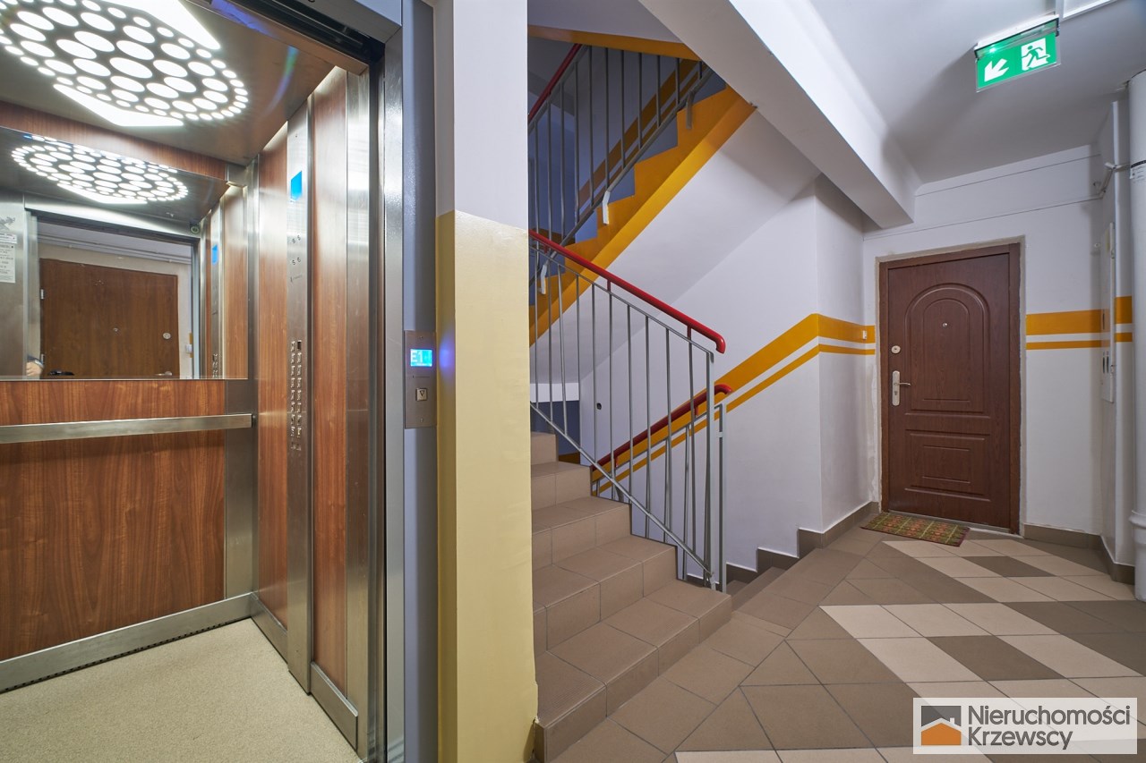 Zadbany wieżowiec po termomodernizacji, klatka schodowa po remoncie. Nowa winda.