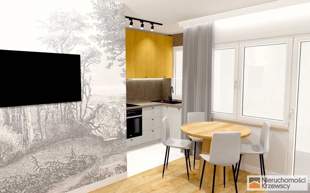 Kuchnia będzie w pełni wyposażona w meble oraz sprzęt agd jak lodówko-zamrażarkę, płytę indukcyjną, okap kuchenny, zmywarkę. W przedpokoju znajdzie się szafa wykonana na wymiar przez stolarza. W lokalu zastosowane będą materiały bardzo dobrej jakości w stonowanej, nowoczesnej kolorystyce.