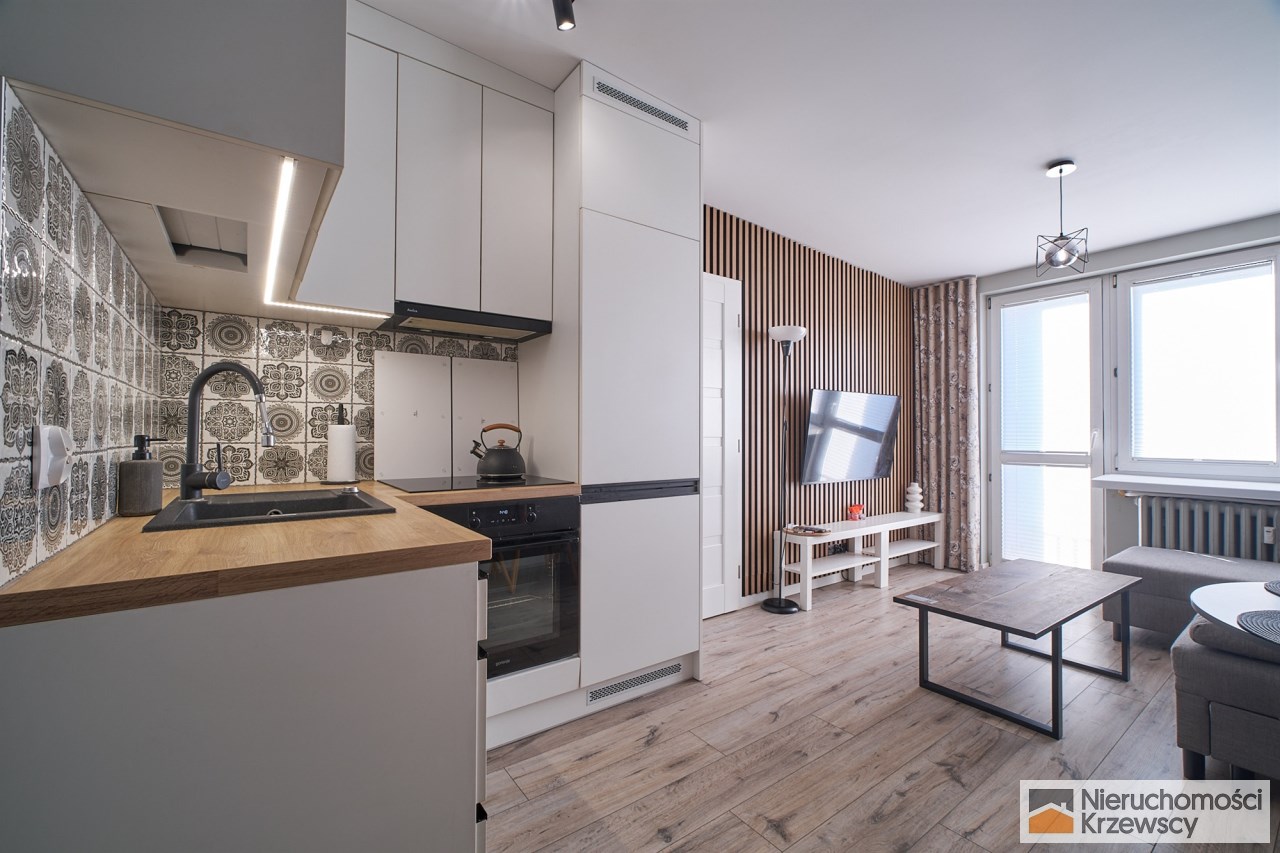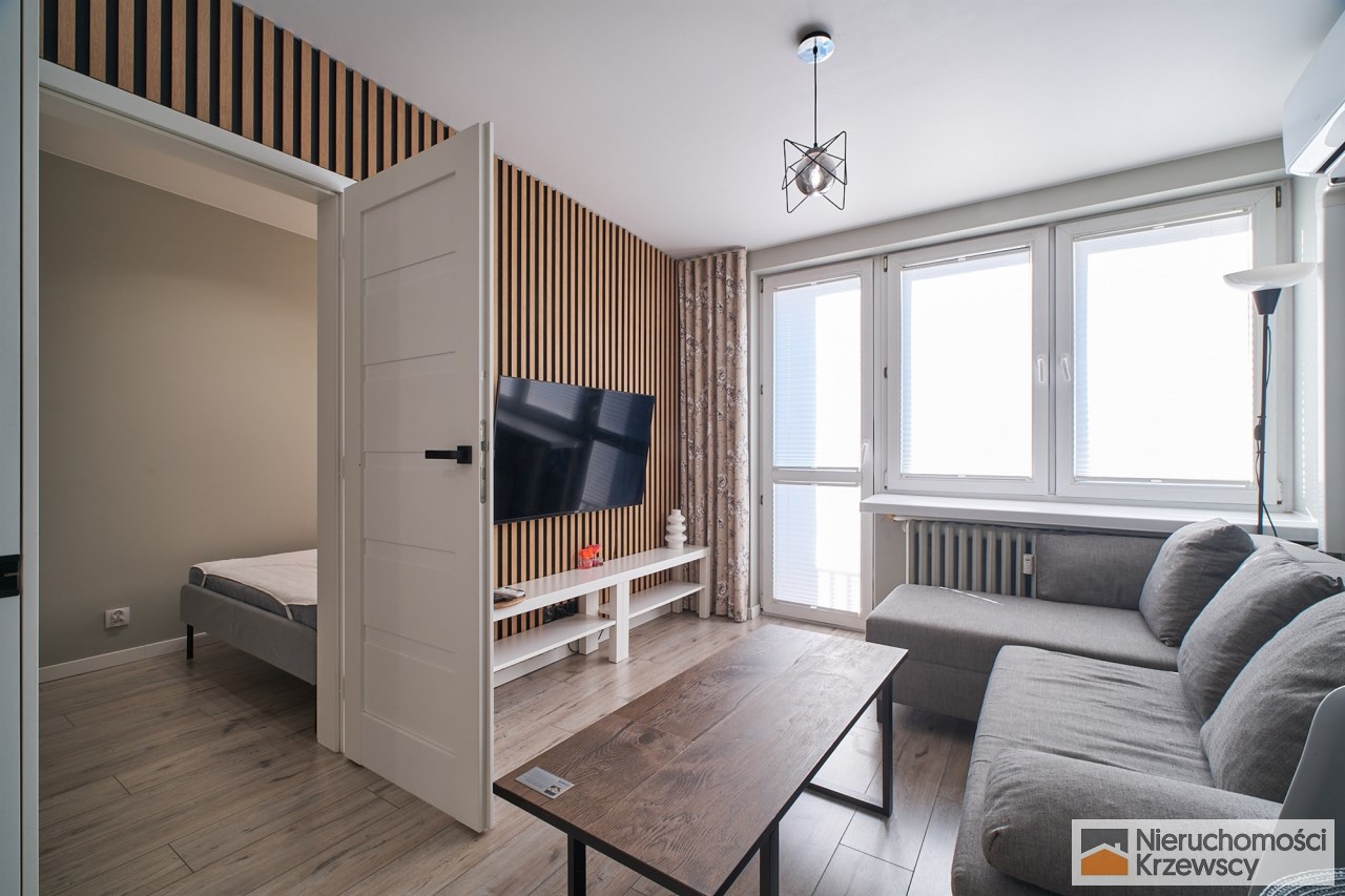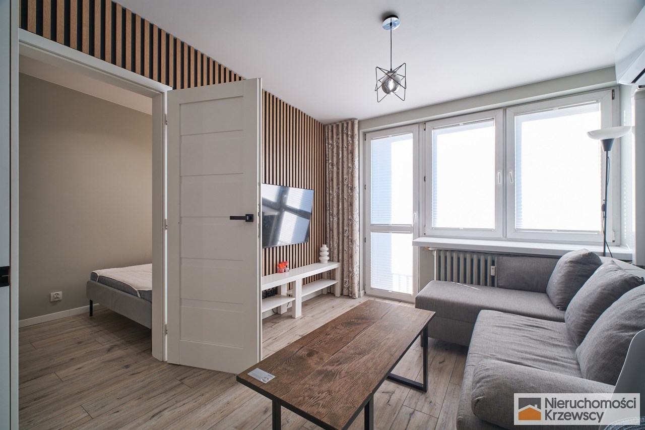 Mieszkanie po kapitalnym remoncie całkowicie urządzone. Lokal składa się z pokoju dziennego połączonego z aneksem kuchennym oraz oddzielnej sypialni z wydzieloną sporą garderobą.